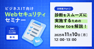 「ビジネスIT向けWebセキュリティセミナー 診断編Part2 〜診断をスムーズに実施するためのHow toを解説!〜」にてCS本部 薄井が登壇します