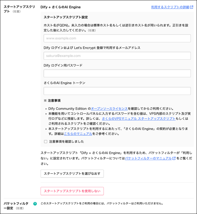 スタートアップスクリプト「Dify + さくらのAI Engine」について