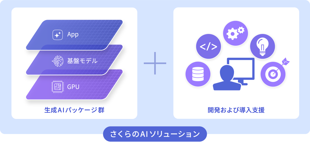 生成AIの活用は多様な分野に広がっている中、利用環境の整備やセキュリティ確保などの面で、依然として課題が残っています。本サービスは、こうした課題に対し、さくらインターネットが運営する日本国内のデータセンターで整備された専有GPU環境による高いセキュリティ性と、月額固定で利用できる明朗なコスト設計、さらに業務アプリケーションの開発および導入支援を行うサポート体制を備えることで、企業や自治体が生成AIを日常の業務へ取り入れやすい環境を提供します。