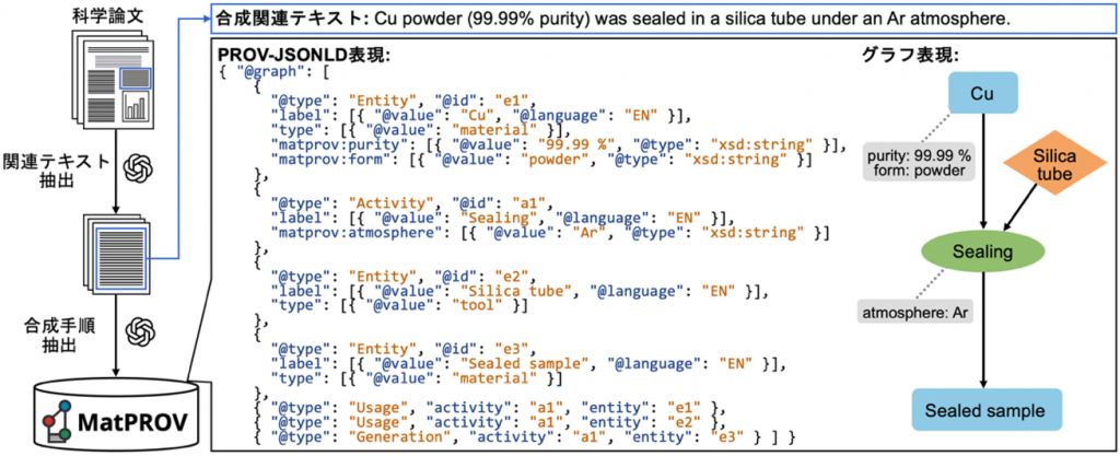 「MatPROV」は、材料・操作・条件の関係性を直感的に理解できる有向グラフとして表現しており、AIによる自動合成計画やプロセス最適化など、今後の研究に広く活用できる基盤となります。