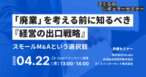 「【さくらのレギュラーセミナー】『廃業』を考える前に知るべき『経営の出口戦略』―スモールM&Aという選択肢」を開催いたします