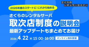 「【さくらのレギュラーセミナー】2026年度のスタートに!これから始める“さくらのレンタルサーバ取次店制度”説明会 ─ 最新アップデートもまとめてお届け」を開催いたします